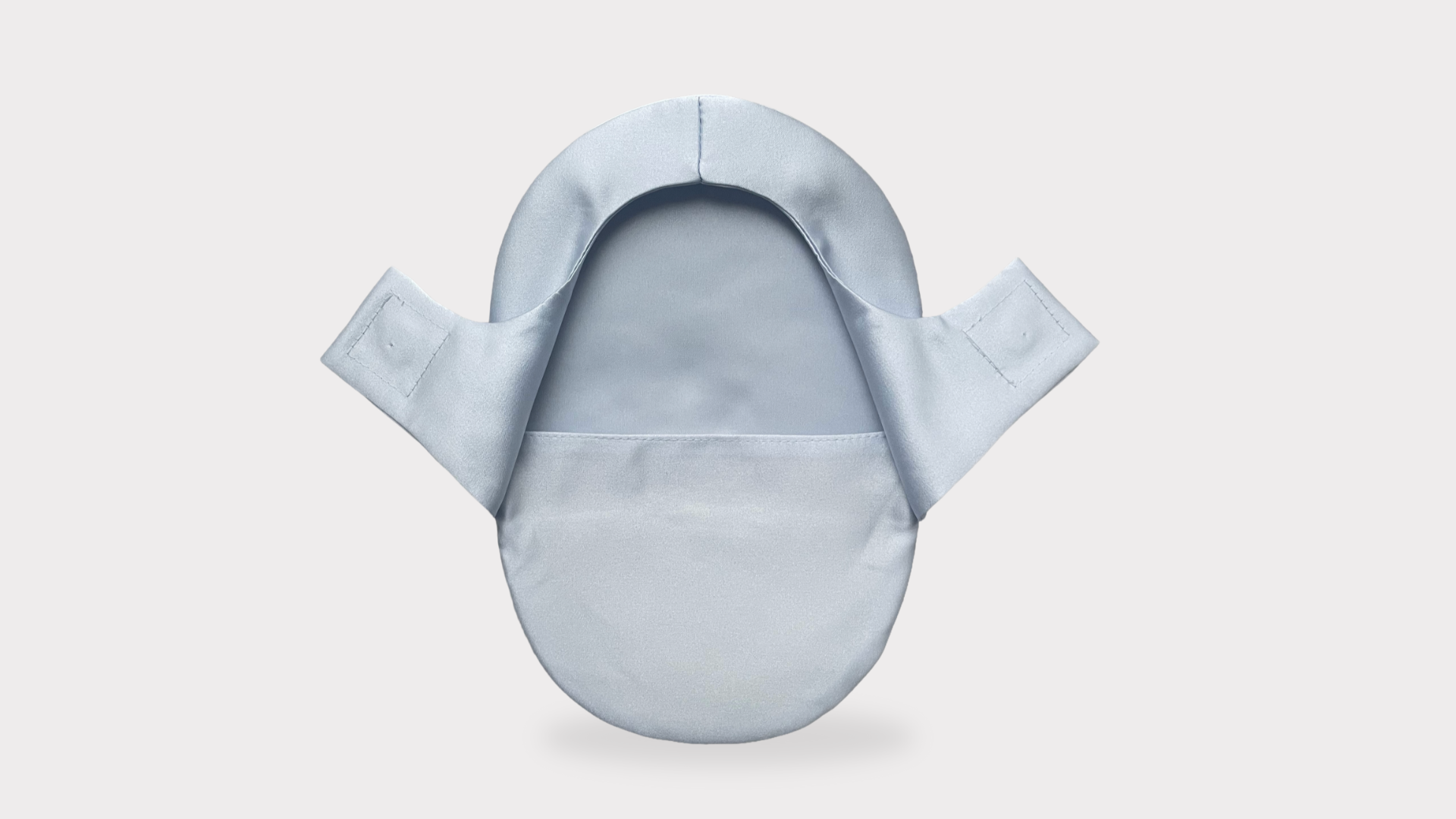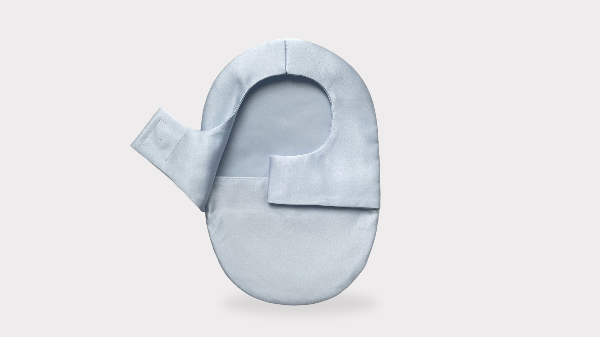 Stomicovers fra Stomera har en diskret magnetisk lukning på bagsiden, hvor to små magneter selv klikker på plads. Det gør åbningen fleksibel, så coveret nemt kan tages af og på – også når stomiposen er fuld.